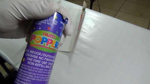 Para esta broma vas a necesitar un popper de gran partido, cómo estas obras es que usted gire la parte inferior y la parte superior saltará lanzando confeti.