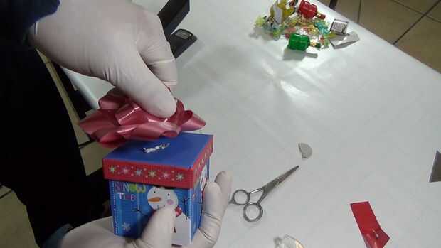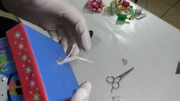 Por último la palmada un arco en la parte superior para ocultar las cuerdas y se verá como un regalo de Navidad normal hasta su abierto por supuesto.