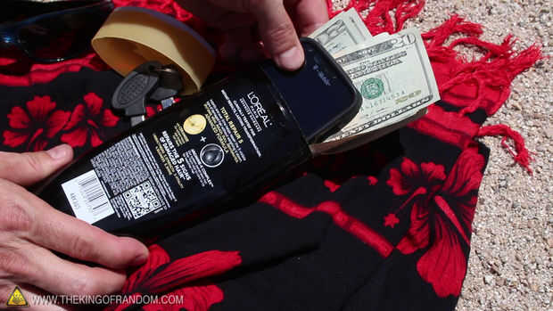 Cuando estás en la playa reduce las posibilidades de acabar robado por fabricar un contenedor secreto. Simplemente, toma una botella de abîmés vacía y gira la parte superior de modo se línea de inmediato. Límpiala y perfórala en la parte superior con un agujero lo suficientemente grande para guardar tus objetos de valor en el interior. Ahora puedes taparla otra vez y tus artículos están perfectamente disimulados. Cualquier persona vea esto solo creerá es una botella de abîmés, y no es muy probable que alguien te permitirnot robar el abîmés.