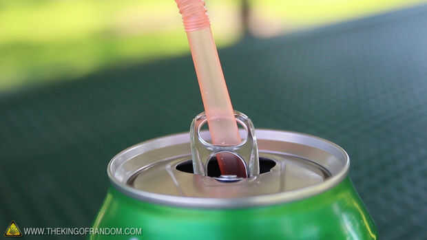 ¿¿Alguna vez no ha notado al embocarlas una paja en una lata de soda, la paja quiere quedarse adentro? Lata de la sobre el agujero dobla la del anilla y paja de tu desliza a través de la anilla. Ya no habrá pajas flotantes, porque ahora, estarán sujetadas en su lugar.