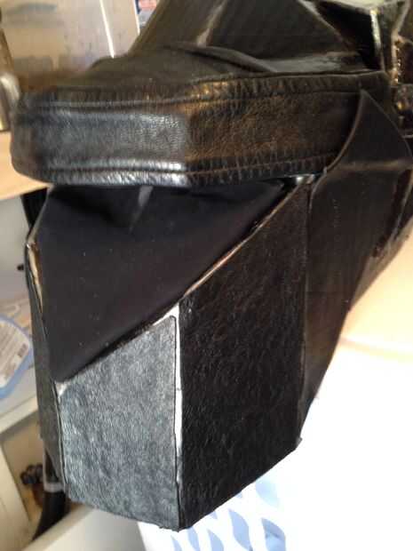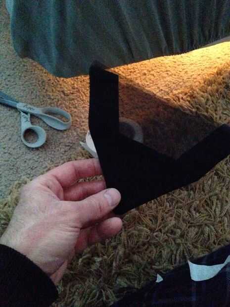 Utilizando algunas de sus abundantes retazos (mantuve mina en el cuadro de como trabajaba, y he dejado un montón para chozas de pulpa de moda para las ardillas de huérfano), corte una amplia V a ras con la apertura.