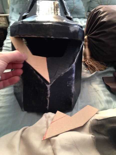 Si tienes cualquier decoración de frente en la parte frontal de su cabeza, y el suyo es un levante de aparato, que tenga que añadir una tira de cartulina en la parte superior (interior) del ojo abertura para evitar que la parte superior del material colgante. Esta ha sido la única solución de diseño que he hecho hasta ahora.