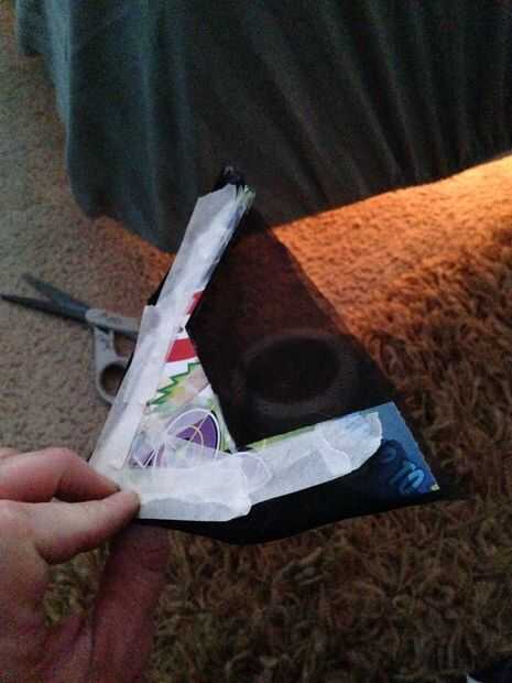 Corte y el exceso en la parte posterior la cinta tan ordenadamente y plano como sea posible. Este es el lado que cinta adhesiva o pegamento abajo en el hueco en la parte delantera.