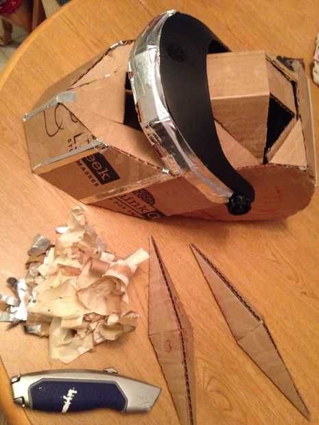 Mientras que su trabajo de goop es la creación, puede utilizar el tiempo para el corte de cartón más. Pensé que quería añadir algunos detalles en forma de dardos de pirámide baja y larga para unir a la swoop, una vez que se fue a montar.