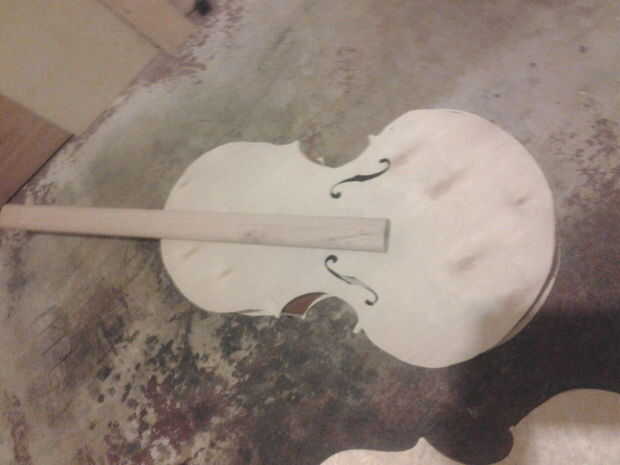 4. tomar la madera sobrante (salvar el planeta!) Corte los combates (lados) del violonchelo.