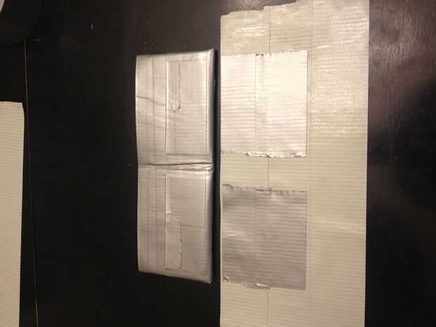 Para evitar que su tarjeta de crédito que se pega al bolsillo, coloque dos tiras de cinta del conducto la longitud de una mitad de su lado pegajoso de la cartera hacia abajo y alineado con cada mitad de su cartera.