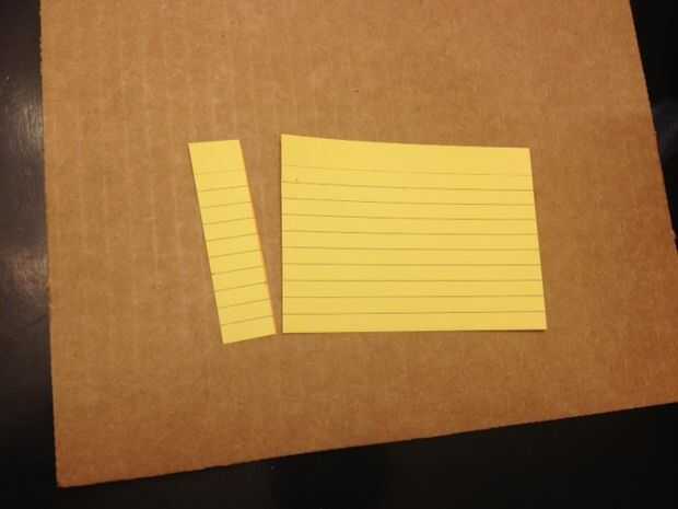 Corte una pulgada de la anchura de su hoja de notas de 3 x 5, convirtiéndolo en una hoja de notas de 3 x 4.