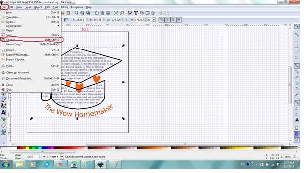 Siempre es una buena idea para guardar tu diseño en formato SVG en Inkscape por lo que se puede editar más adelante si necesita y está en un punto avanzado no rasguño. Haga clic en archivo, luego Guardar como, en el pop-up ventana, seleccione Guardar en carpeta, darle un nombre de archivo y guardar (Fig.10.1).