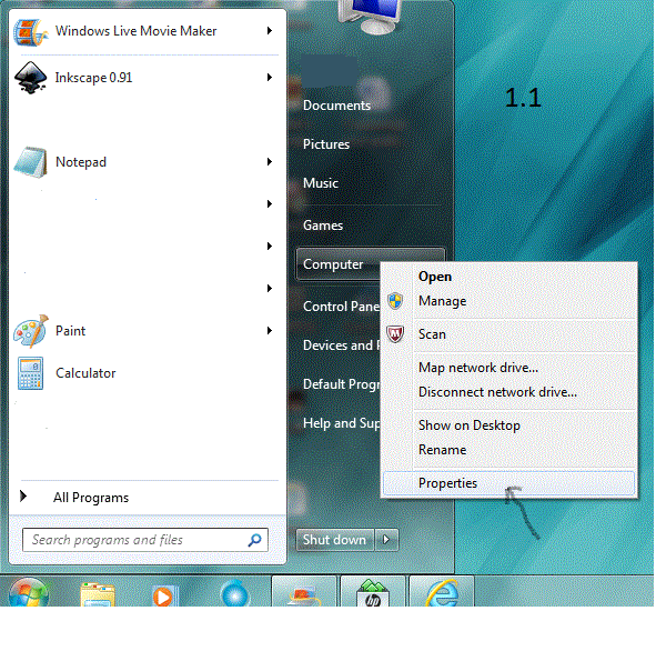 1.1 averiguar el tipo de sistema del ordenador: Haga clic en Inicio de su ordenador, haga clic en equipo, haga clic en propiedades, en la ventana Propiedades, en la sección de sistema , después de tipo de sistema dederecho, dice sistema operativo de 64 bits o sistema operativo de 32-bit.