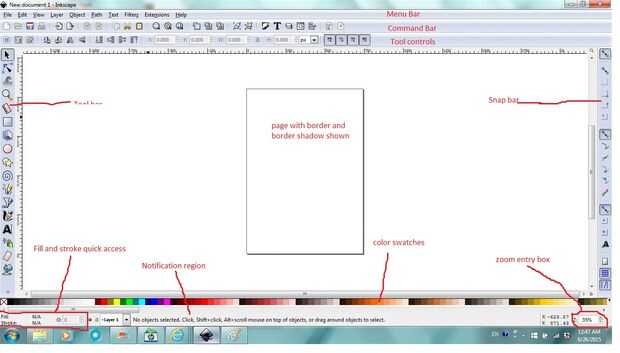 Un rápido vistazo de la ventana de Inkscape, lugares que con frecuencia se utilizan son: