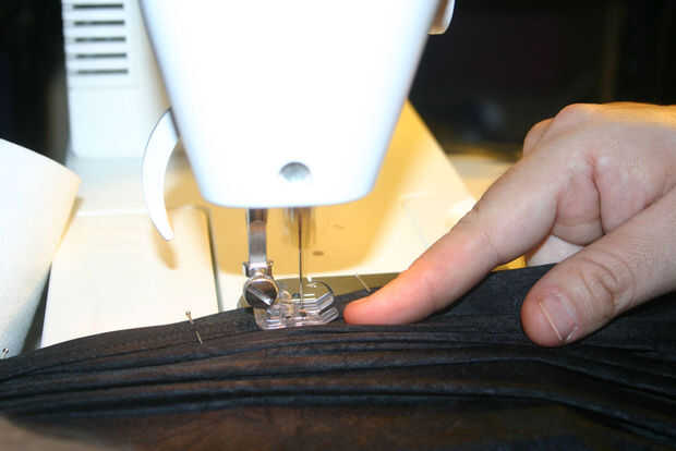 3. medir a la tela para la altura y el total de la anchura. Coser un tubo de tela, formando el cuerpo de su manto (Prender las costuras y coser recta costuras con máquina de coser)