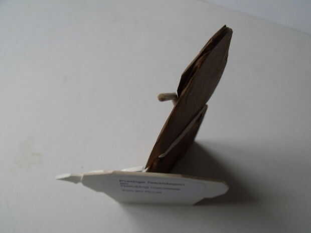 Aplique la cinta de rafia. Doblar un poco la brocheta en la parte superior y colóquelo debajo de la correa. Pegar la cabeza a las ovejas. Escriba su deseo en la parte trasera. Aplique una pequeña línea de pegamento en el lado del pastor y las ovejas de lugar. El apego permanece flexible porque la capa no se pega por todas partes. Compruebe si el pastor puede valerse por sí mismo.
