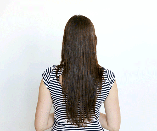 - Reúna su pelo en la parte posterior de la cabeza como si vas a poner en una cola de caballo y sujetarlo con la mano no dominante.