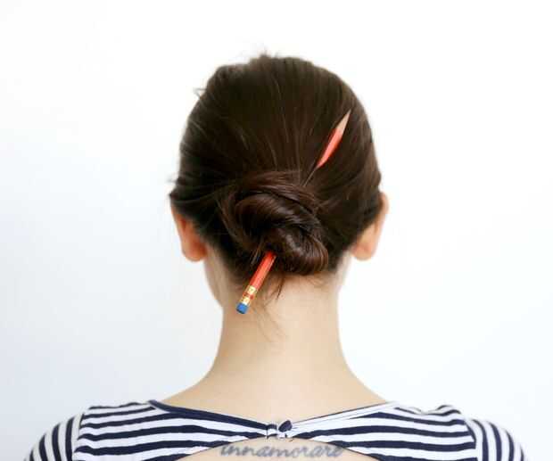 - Tirar el lápiz en el borde del moño y empuje la punta suavemente hacia su cuero cabelludo y luego ejecutarlo en el bollo a lo largo de su cuero cabelludo.