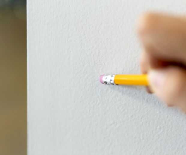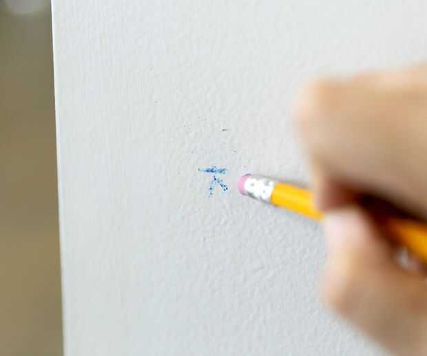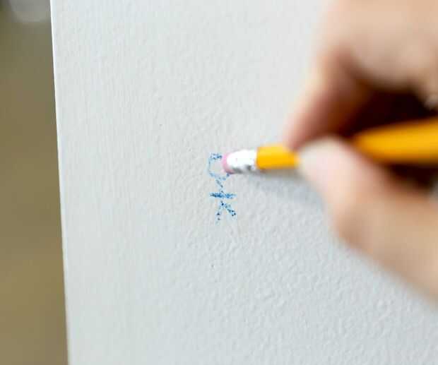 El borrador de la pequeña Rosa en el extremo del lápiz común es un campeón en la eliminación de arte perdida crayon' que ha encontrado camino hacia cualquier satinado o brillo pared pintada.