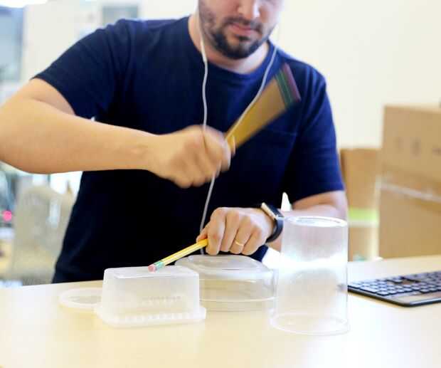 Utilizar los extremos de goma de dos lápices sin filo para practicar su fat beats y ritmos precisos, en decir, algunos recipientes de plástico estratégicamente situados para alimentos.