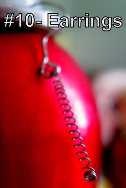 #10-pendientes. Necesitarás dos maquinillas de afeitar antes de que usted puede hacer un par, pero tomar una pendiente de-gancho de los pescados y el muelle (menos el plástico), alicates, abrir el extremo del resorte y y a través del orificio en el anzuelo. Gire alrededor y listo! Alternativamente usted podría agregar algunos otros muelles, amuletos etc.. Especie de steampunk-ish.