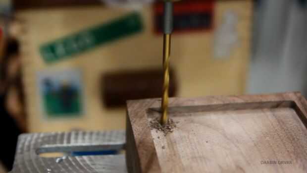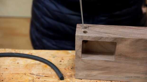 Ahora en el lado de la nuez necesito un agujero para el cable de alimentación y también quiero un interruptor para encender y apagar la luz. Así que me sacar el tamaño del interruptor, y primero perforé dos agujeros, uno para el interruptor y otro para el cable de alimentación. Entonces yo estoy cincelando el área para el interruptor que encajan a la perfección.