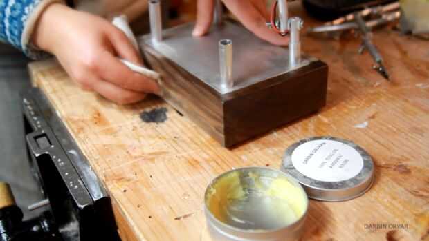 Entonces yo soy lijar los bordes aquí para crear un ligero chaflán y estoy terminando el nogal con algunos de mi cera de aceite de tung y realmente saca el color.