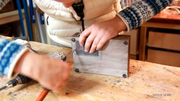 Ahora para la parte inferior, todos los componentes electrónicos están expuestos, así que quiero añadir alguna protección, todavía tienen mucho flujo de aire, así que recogí algunos malla de alambre fino en la tienda de artesanía. Así que corte a la medida y luego asociar sólo con un par de tornillos pequeños y ve bien.