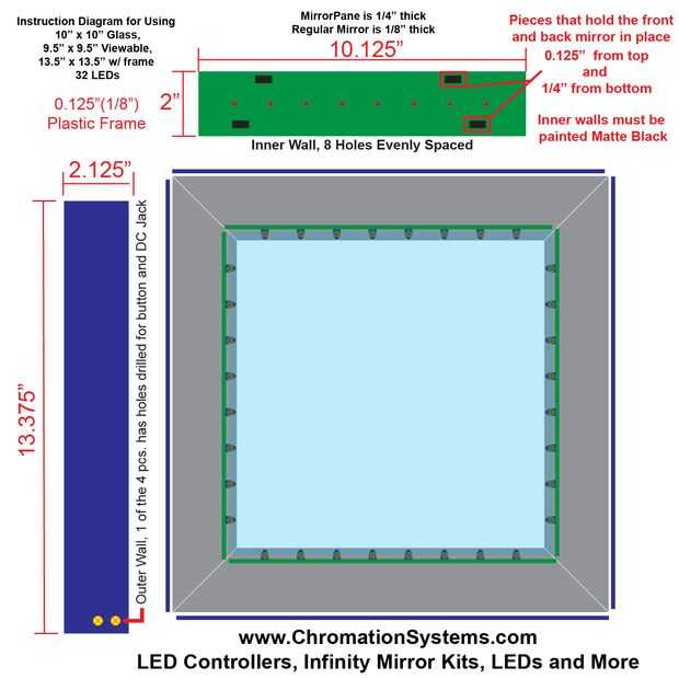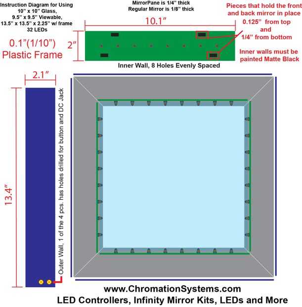 Los 10 "x 10" infinito espejo Kit, Kit completo viene con todas las piezas necesarias para un espejo infinito. A suministrar las herramientas que se enumeran a continuación. O utilizar el diagrama de las piezas incluidas para crear su propio.