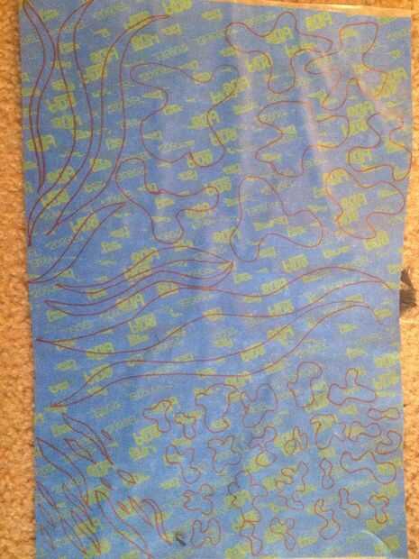 Lo que se necesita a la deuda es extraer cerca de dos pies de papel encerado y cubrir completamente ambos lados con superposición de capas de cinta de pintor. Una vez que lo hace dibujar que todos sus patrones en un lado solamente, recuerdan que cada patrón creará dos pegatinas.