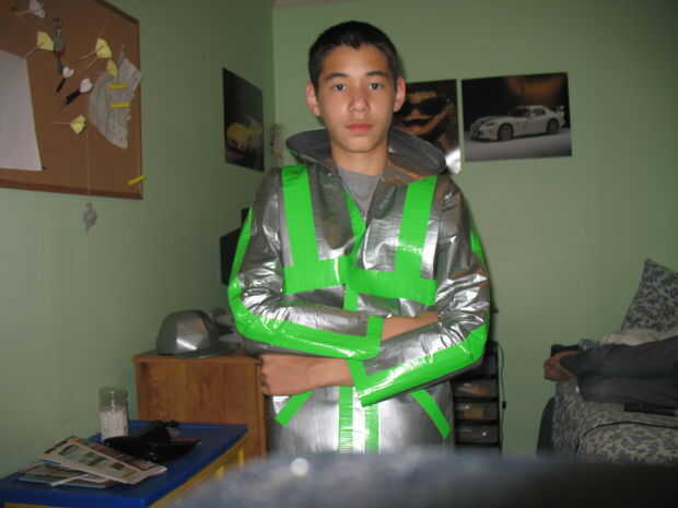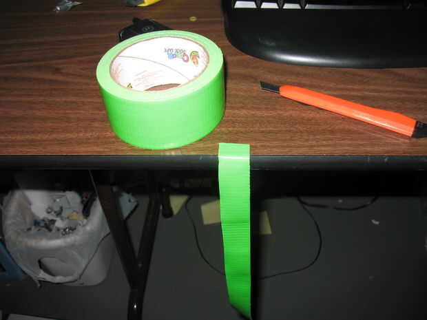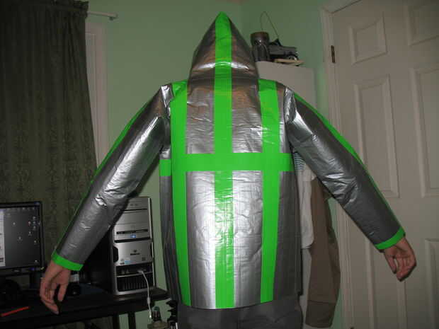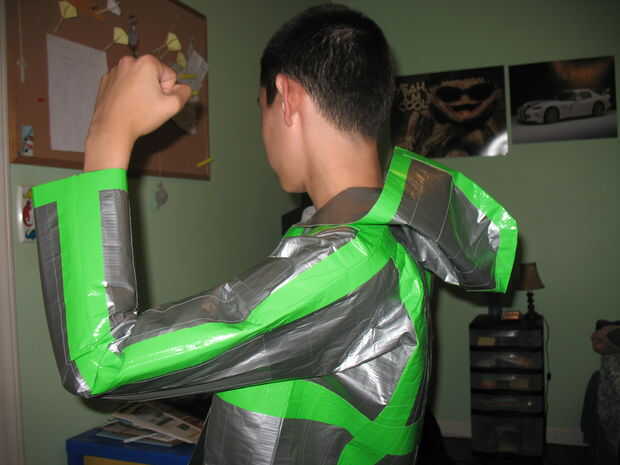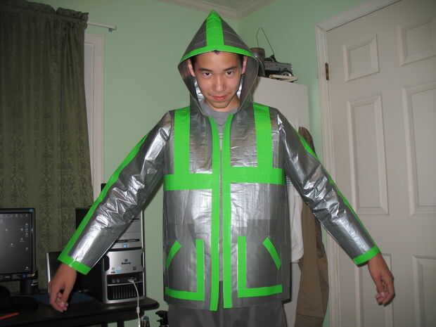 Usted puede poner un montón de rayas, cuadros cuadrados, o imágenes y palabras con cinta adhesiva de color. Sólo hizo una opción fácil y poner un color de cinta en lo que considero que las fronteras de la chaqueta.