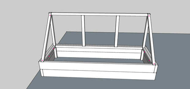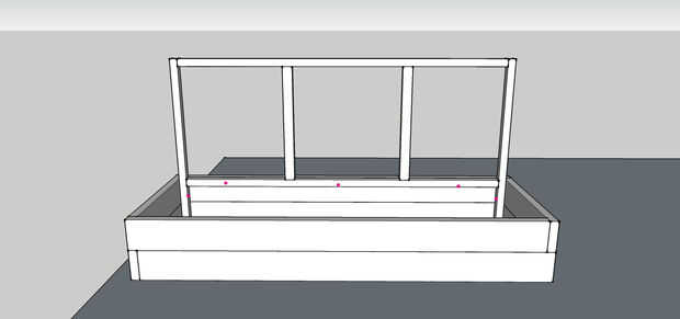 2. Fije el 22,25" a cada lado, conectando a la base. Tornillo donde se encuentran los puntos rosa