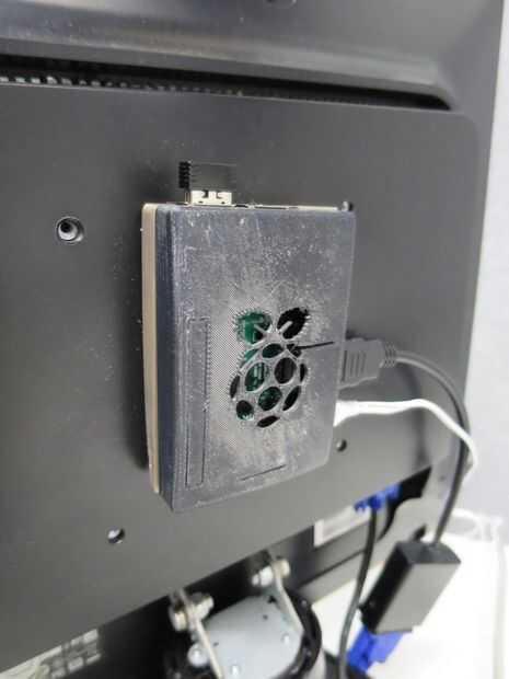 Decidí 3D imprimir un caso para mi PI por lo que pude montar en la parte posterior del monitor. Encontré este caso en thingiverse cortesía de un fabricante llamado Normand: