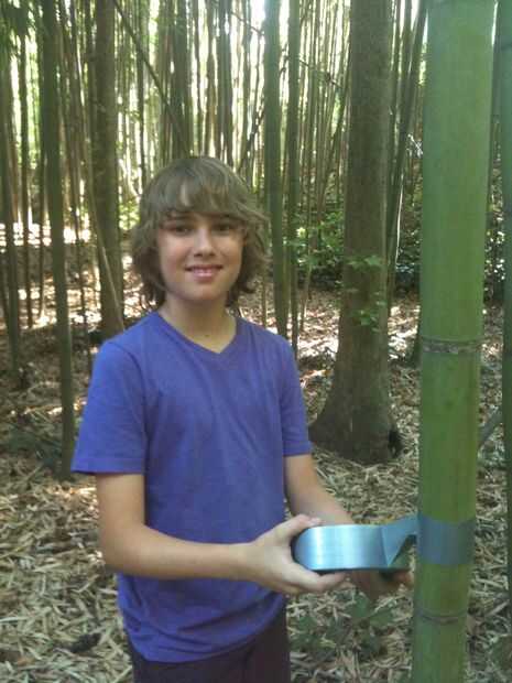Obtener algunos ducktape y encontrar cuatro árboles en forma de rectángulo (yo usé árboles de bambú). Utilicé 7 papeles de ducktape para minas pero realmente depende de lo lejos aparte son sus árboles. Empezar a envolver el árbol en sobre nivel de la cintura para empezar el proyecto.