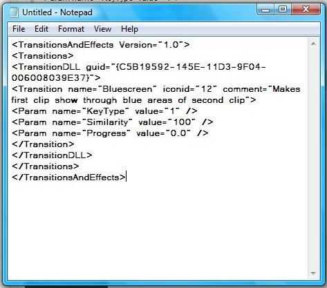 < nombre de transición = "Bluescreen" ID = "12" comentario = "Hace primer clip show a través de las áreas azules del segundo clip" >