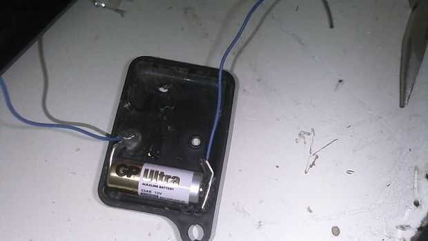 generalmente garaje puerta remota o barato mp3 player casos obras. encontrar un pequeño pedazo de metal conductor y pegar como conector de la batería. no te olvides de la soldadura de los alambres a él.