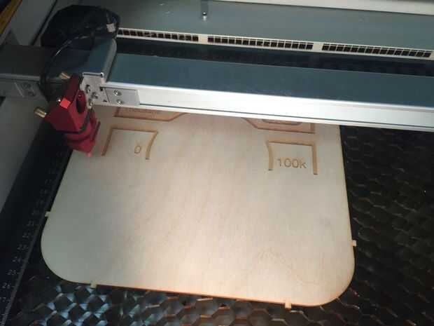 Grabado el panel frontal después que corte con láser en primer lugar como no había creado el diseño frontal en el momento, pero usted será capaz de hacer ambas cosas a la vez utilizando los archivos de diseño proporcionado.