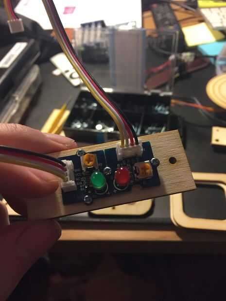 Perno de 2 tableros de Grove LED tal como se indica a la base LED utilizando algunos tornillos, tuercas y arandelas de M2. Los pernos entonces perno hasta el elevador flash utilizando un par de M3. Va Nota importa que camino ronda la canalización vertical del LED, el LED debe alinearse con el punto centro de la pieza de acrílico mejor manera que la otra.