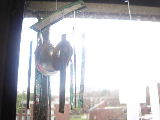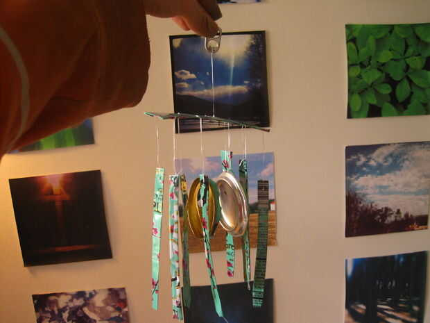 este es un pequeño viento chime lo puede hacer por poco más de un 99 ciento Arizona Tea puede en una hora o dos. Su sonido es más bien un ruido clanky clacky clicky que un sonido de campana, pero creo que suena bien. Más parece un poco bastante.