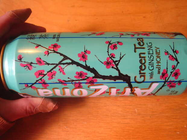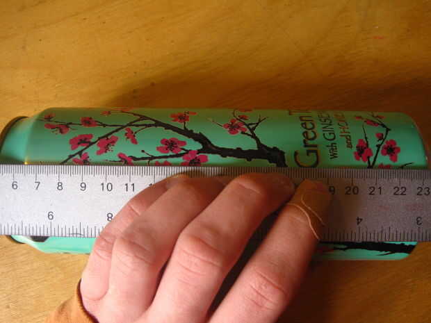 Así que si tienes una lata de té verde, línea de la 'A' de "Té" y la ' t ' de "NATURAL" con su regla y dibuja una línea. (primera foto)