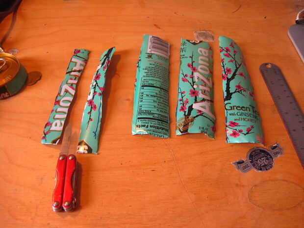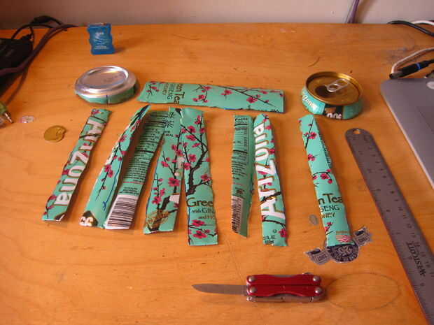 Dulce, tienes cinco tiras de puede cortan! Cosa es, que realmente se necesita un poco más, y tienen que ser más pequeño. Elija un producto uniformemente en forma de uno y dejar de lado. Tome las otras cuatro tiras y cortarlas por la mitad.
