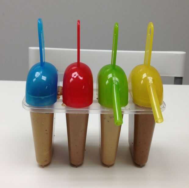 Vierta la mezcla en los moldes. Para fanciness extra, añadir a unas semillas de cacao o piezas a la base de la paleta de caramelo. Congelar durante un mínimo de 4 horas. Estos moldes fueron difíciles sacar las paletas de, pero tal vez las tazas de Dixie papel funcionaría mejor.