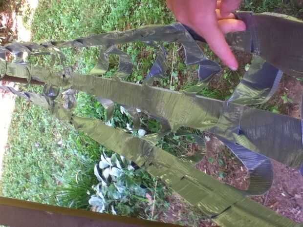 A partir de una intersección ejecutar un trozo de cinta aislante entre el soporte central y uno del lado apoya encima de las costillas hasta la otra esquina. Repita en el otro lado. Asegúrese ahora para arropar a la intersección y los nuevos soportes juntos para que no se salgan.