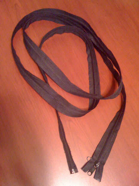 Tendrá una longitud de la cremallera de su elección, fui con una cremallera de metal saco 100 pulgada sólo porque necesitaba un abrigo que era más de 7'. Yo obtuve en telas de Joann de $8,55 con un 50% de descuento cupón como originalmente $17,50 sin cupón (Ouch!). Usted también necesitará algo de tela, fui originalmente con una tela expandible como lo que fue en el 20" envolturas de cable, que terminaron horriblemente y tenía-la puntada más 150" de lo de la cremallera. Terminé yendo con paño de pato, el tejido es más grueso y muy resistente, misma cosas que usar para hacer atento bolsas, si nunca han escuchado de atento que aquí es alguna información en él
