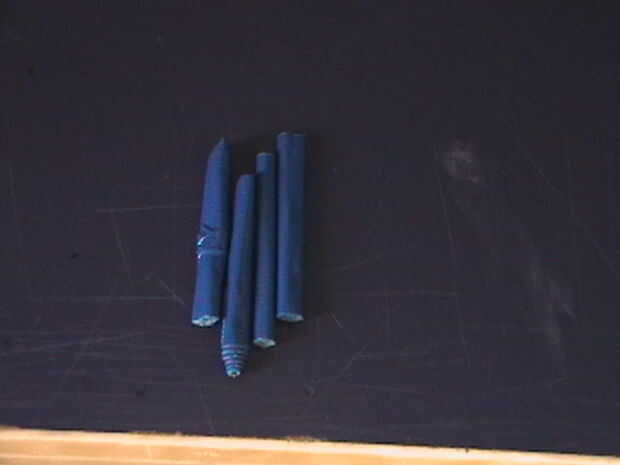 Así que lo primero que quieres hacer es hacer las piezas. Medir una pieza de 4 pulgadas de cinta de corte/rip lo, gire el lado pegajoso hacia arriba y hacer un pequeño pliegue en la parte inferior. Luego comienza a enrollar apretadamente como sea posible, mientras se mantiene la forma cilíndrica. Hacer esto 3 veces más.