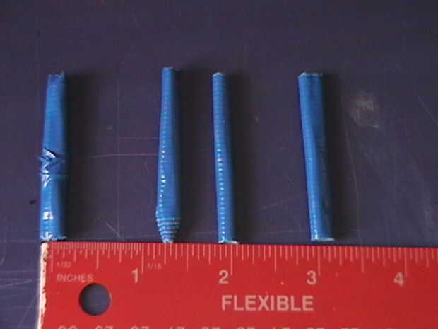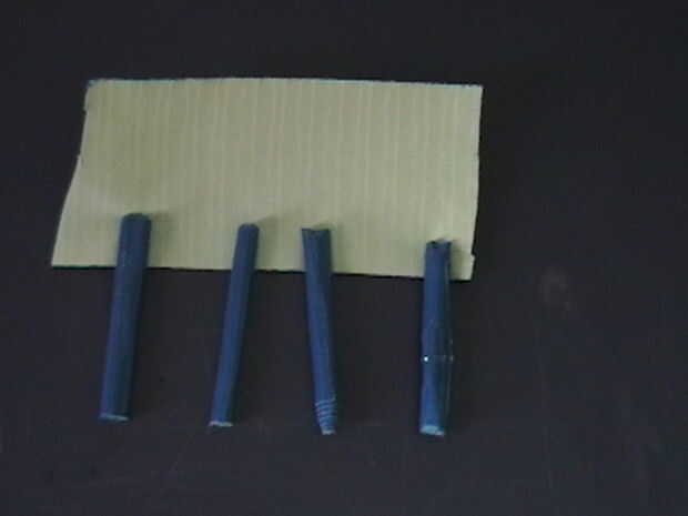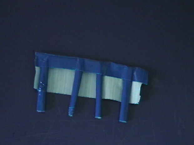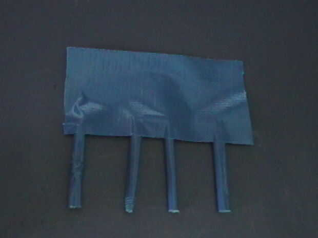 Entonces adelante y agarrar un pedazo de cinta alrededor de 3 1/4 pulgadas. Colocar esta pieza sobre las puntas de los palillos, asegurándose de que no se metiera hasta la colocación. Presione hacia abajo y dan la vuelta.