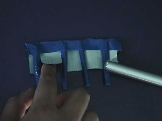Ahora dobla la parte pegajosa sobre cuanto puede ir. Ahora dan la vuelta otra vez.
