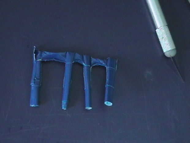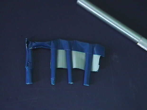 Corte las piezas extra pegajosas sólo en los lados tocando la pega. Ahora doble la parte y rodar sobre la parte no adhesiva. Hacer esto con todos los bits extras.