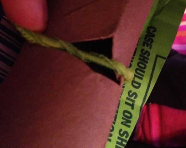 Hemos probado con cinta adhesiva el tubo de cartón la cabeza pero no se quedaría. Entonces nosotros con grapas una banda elástica en la parte posterior de la cabeza de cartón. El tubo se desliza derecha a través de la goma y sostiene firmemente.