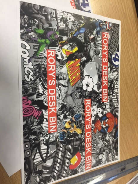 Usé google y pintura para crear una imagen para cubrir mi "bin" con y asegurándose de que saben de la mina y no accidentlly tirada sobre el fin de semana, pero usted puede usar cualquier imagen, fotos familiares, fotos de la película, wallparers... incluso uso espuma de arte y ser realmente creativo