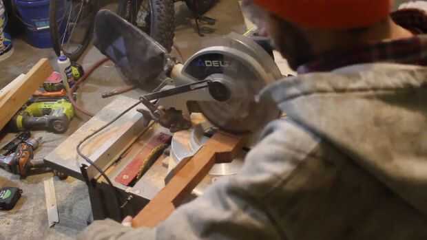Para sostener las zapatas que utilizan la tensión de la cabeza de trampa concéntrico alrededor del borde del cojinete con la llanta, yo corte una hermosa pieza de roble de una pierna de la plataforma.
