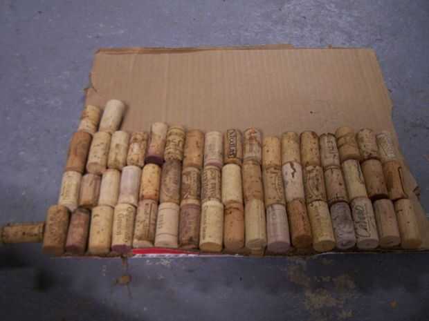 Cortar un cartón y empezar. Comience alineando los corchos exactamente cómo quiere, esto podría tardar unos minutos porque algunos de los tapones son de distintos tamaños.