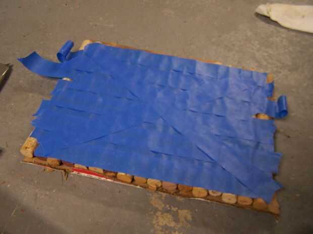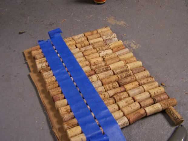 Cuando tengas todos los corchos exactamente como usted los quiere cubrir todo en pintores de diurex y voltear todo sobre otro trozo de cartón o algo plano. (Grabar los corchos mantendrá los corchos en lugar para que el lado que desee puede afrontar, si tiene una palabra o fecha que desee para poder ver o algo)