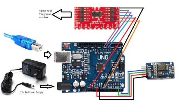 Conecte un segundo dígito a la primera. Utilice los cables de 6 puente para conectar una segunda pantalla de 7 segmentos para la primera unidad de exhibición. Asegúrese de que conecte GND de la salida en la primera pantalla a la GND de la en la segunda pantalla, LAT de la salida en la primera pantalla para el LAT de la en la segunda pantalla y así sucesivamente para los dígitos 3 y 4. Ahora 12V para alimentar el Arduino y usted debería ver todos los números de contar. Si no es solucionar todas las conexiones para determinar el problema.